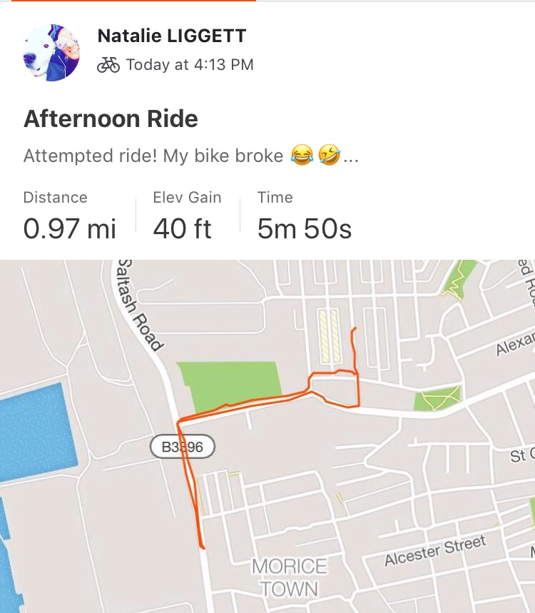 Here is my Strava map just to show you how pathetic my ride really was 🤣😂🤭…..