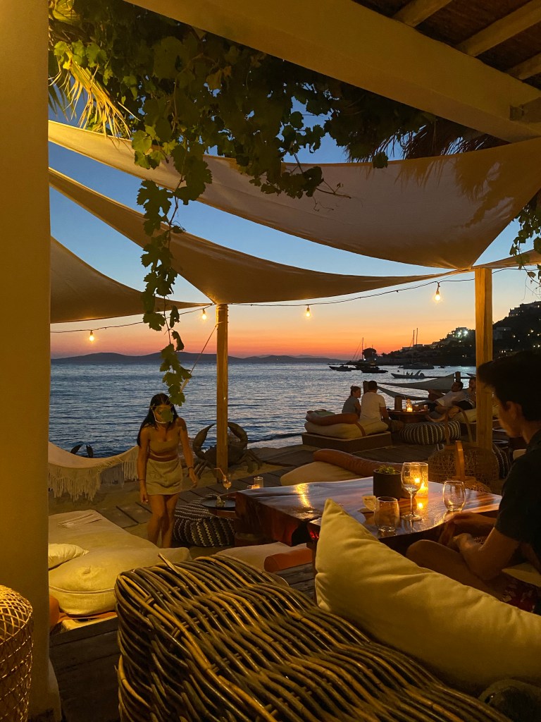 I found after reading other travel reviews, Paraga and psarou were among the favorite day beaches but as a homerotic female I have to say, my favorite was ‘Jackie O’ beach club and restaurant on paradise beach. Jackie O’ offers world renowned cocktail’s, drag shows offered in chic and a LGBTQ+ friendly spot with a pool. But just a word of warning! Make sure you book a sun lounger or table in advance! This can be done online with ease.